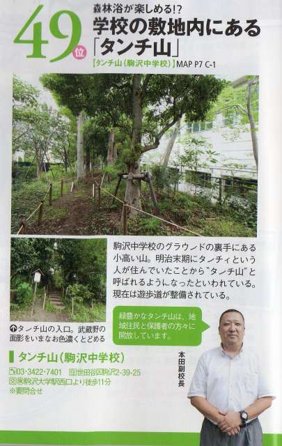 タンチ山が「駒沢大学駅Walker」(2013年10月11日発行 株式会社KADOKAWA)の地元自慢ランキングBEST50に掲載されました。