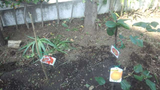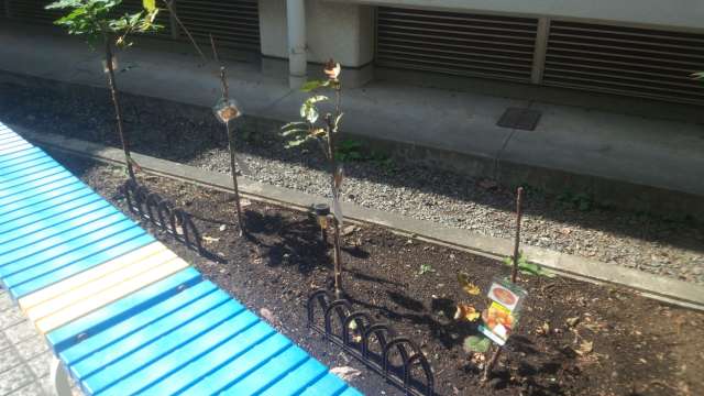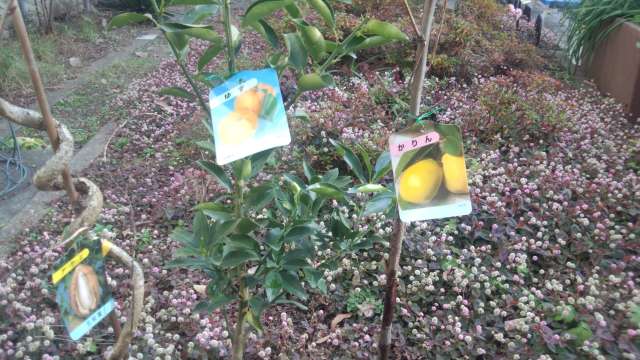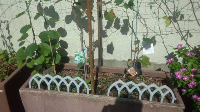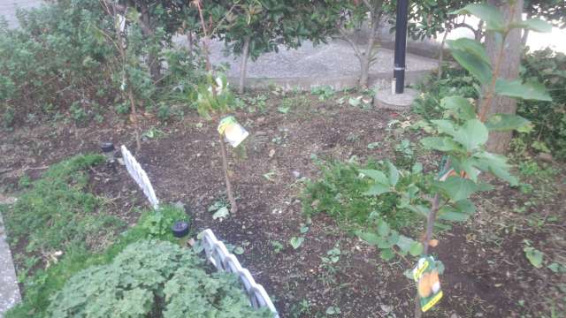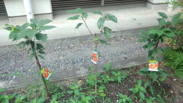 さくらんぼ(桜桃)、梅、甘夏、ざくろ、ぶどう、桃、栗、柿、キウイ、イチジク、キンカン、みかん、梨、ゆず、カリン、あけびを中庭などに植えました。