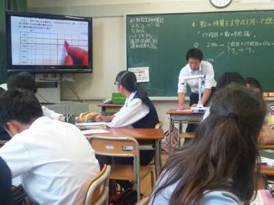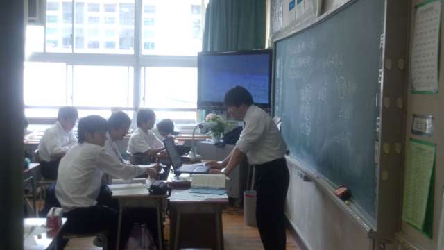 新井教諭が1年生の数学の研究授業を行いました。授業の目標に沿ってふんだんにICTの活用を取り入れた授業実践でした。研究協議会では、それぞれのICTの活用について活発な意見交換があり、最後に区教育委員会指導主事のお二人から指導・助言をいただきました。