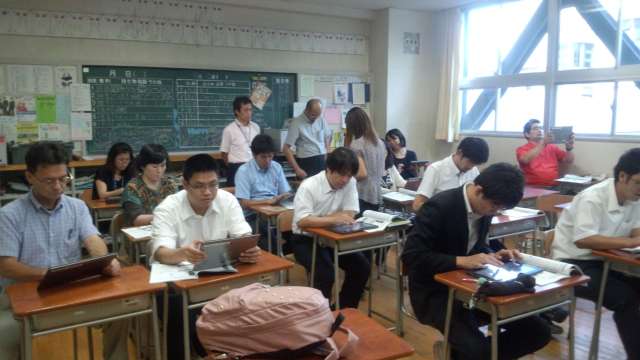 - 本校も今学期よりタブレットを導入しましたので、貴校の授業を参観し、たいへん勉強になりました。理科の授業では班での結論をデジタルワークシートに書かせるだけでなく、動画も撮らせるという活動が興味深かったです。板書とICTの併用が確かに大切だと感じました。(多摩市中学校)