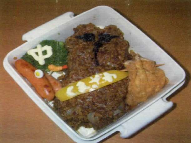 生徒会キャラクター「くまざわくん」のお弁当です。家庭科の担当教員の力作です。