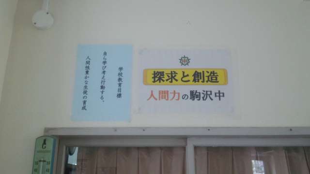探求と創造 人間力の駒沢中この教育理念(スローガン)をすべての土台として、学校経営方針、校訓、学校教育目標、教育課程などの具体的な方針や計画を校長が決定しています。