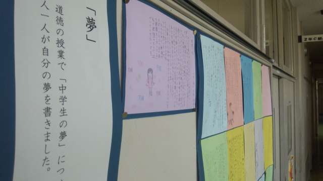 2年生の道徳の時間に考えた「夢」についての掲示物です。「人の役に立ちたい」など、感心する内容がたくさん書いてあります。