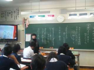 2Aで坂本佳苗教諭が研究授業を行いました。主題は2−(6)感謝です。