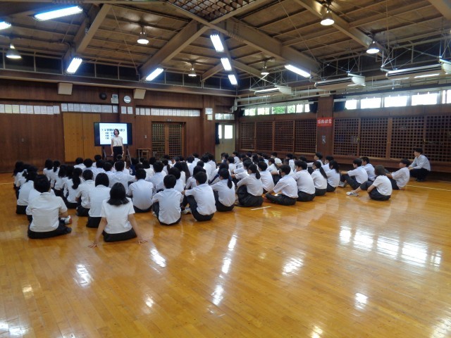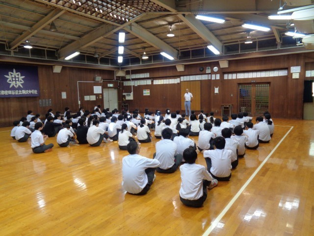 終業式に続いて学年集会がありました。河口湖移動教室の話、夏休みにかかる話、受験にかかるエピソードの話などが各学年でありました。この後は学級活動です。通知表も渡します。ご家庭で振り返りをお願いします。