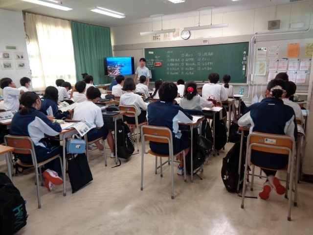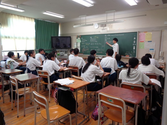 6校時の1年生の授業は水泳、英語です。2年生は理科(写真付き)、一次関数(数学・写真付き)、東北地方をながめて(社会・写真付き)です。3年生は、少子高齢化(社会)、マット運動(保健体育)、古今和歌集(国語)です。