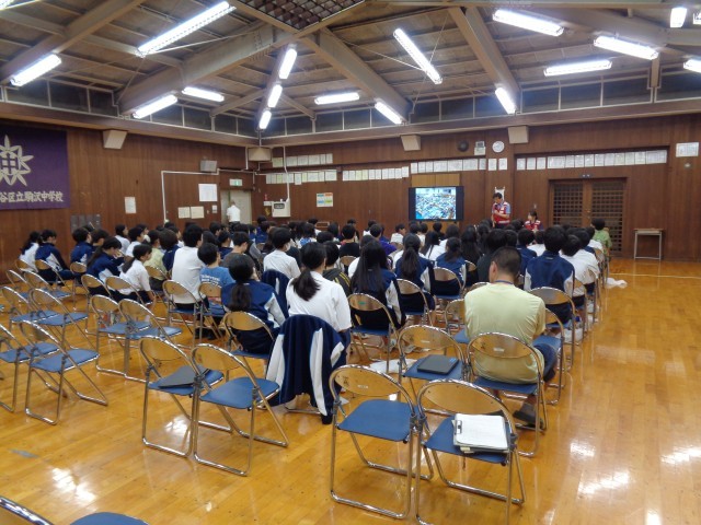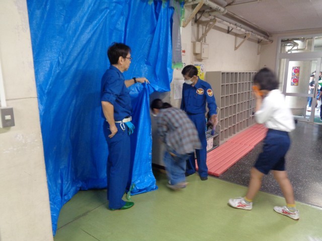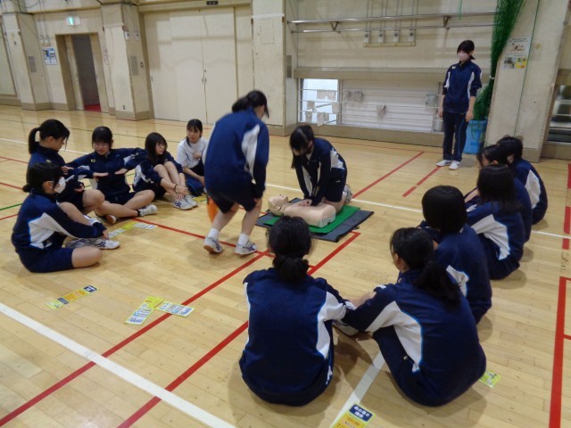 総合防災訓練では、赤十字の方による講義(実技も含む)「避難所生活」、煙中避難・初期消火訓練、AED訓練を行いました。消防署・消防団の皆様、指導していただきありがとうございました。