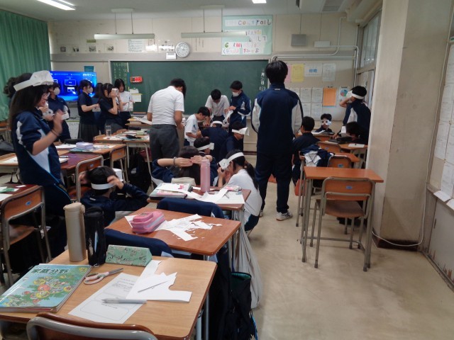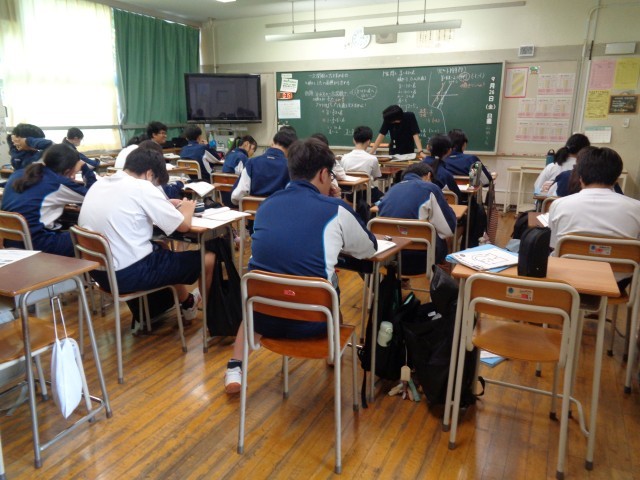 6校時の1年生の授業は社会、Tボール(保健体育・写真付き)、音楽です。2年生は、一次関数の式を求める(数学・写真付き)、文章全体の構成を確認しよう(国語)です。3年生は、月の満ち欠け(理科)、人権の歴史(社会)、チャイルドビジョンを使用して幼児の世界を体験しよう(家庭科・写真付き)です。