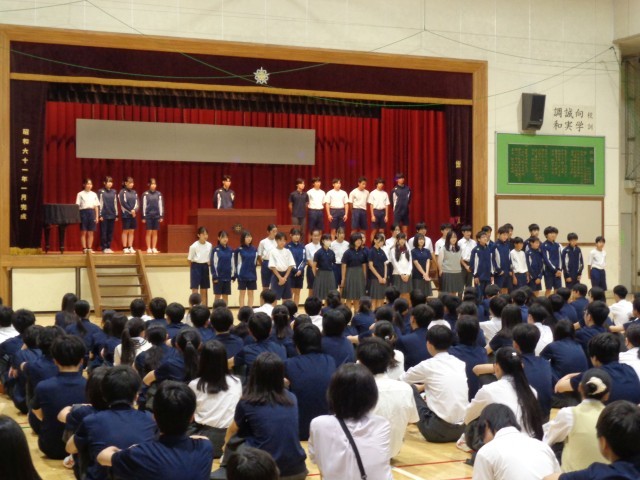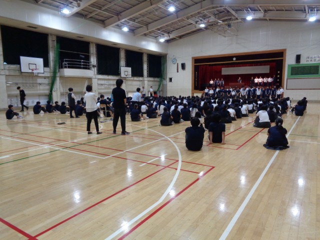 全校朝礼の後、明日行われる区中学校陸上競技大会(区陸)の壮行会を行いました。代表選手が力強く意気込みを話しました。明日頑張ってくださいね!