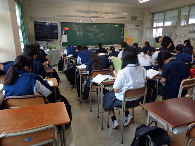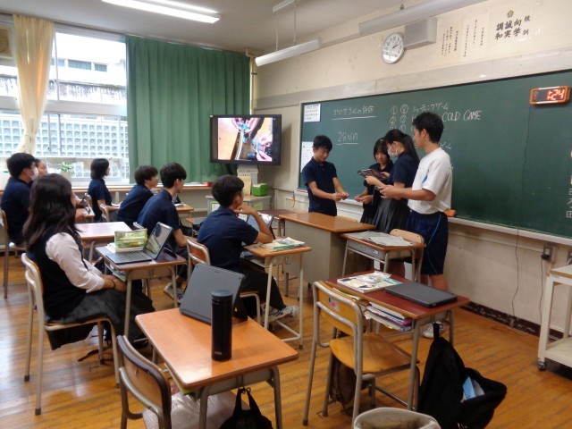 5校時の1年生の授業は、方程式の解き方(数学・写真付き)、音楽です。2年生は、根や葉のはたらき(理科)、美術(写真付き)、Tボール(保健体育・写真付き)です。3年生は、プログラムの評価(技術・写真付き)、「私」の言う「希望」は何を示すかを考える(国語)、平和主義(社会)です。