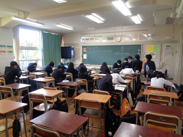 本日も学校公開中です。ぜひ来校して授業をご覧ください。1校時の1年生の授業は、反比例のグラフはどのようになるか(数学・写真付き)、武士の生活(社会)です。