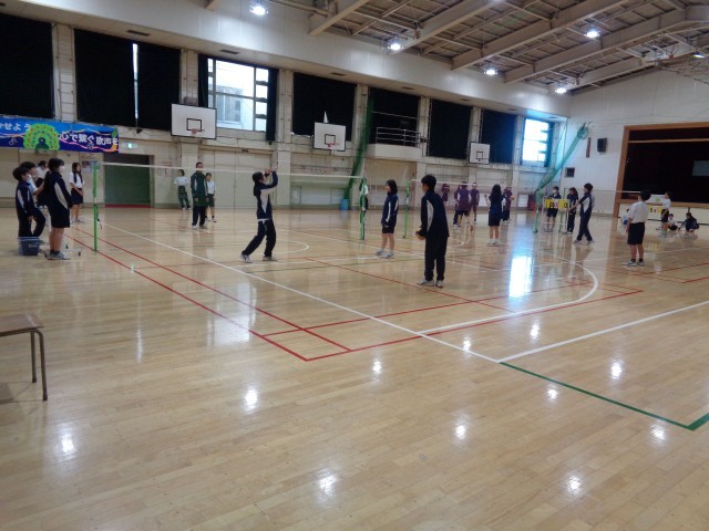 6校時の1年生の授業は、バレーボール(保健体育・写真付き)、定期考査解説(英語)です。