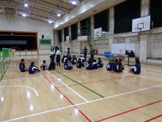 3校時の1年生の授業は、定期考査解説(家庭科・理科)、バレーボール(保健体育・写真付き)です。