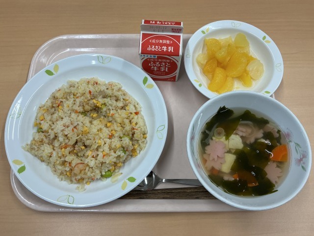 今日の献立は、そぼろ寿司、すまし汁、フルーツポンチ、牛乳です。