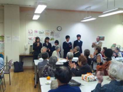 本校の生徒が部屋に入ると、とても盛大で、温かい拍手をいただきました。