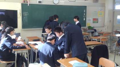 1年生の教室では、1月の校外学習の準備が始まっています。(写真中・右)班行動の時間と見学経路を相談してまとめているところです。各班は担当の先生と相談しながら、和気あいあいと取り組んでいました。