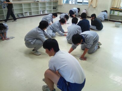 生徒は汚れているところを見つけてはがんばってきれいにしていました。