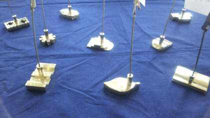 写真左は3年生の技術の作品、中央は2学期の最後の授業(3時間目)終了後の廊下の様子です。