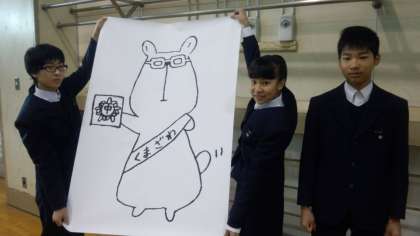 終業式の後、生徒会役員から「駒沢中学校の生徒会キャラクター」が発表されました。先週の最終投票の結果、写真左のキャラクターが当選しました。惜しくも次点以下となったキャラクターも、たいへんよかったと思います。ありがとうございました。