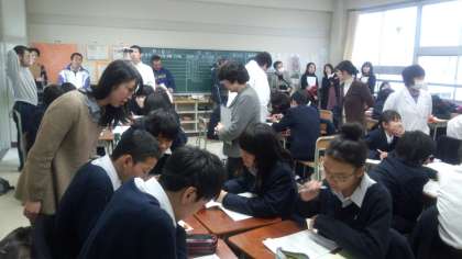1年C組で教科「日本語」哲学領域「考えることを考える」の授業研究を行いました。導入でICTを使い、生徒たちが引きつけられている様子がよく分かりました。研究協議会では、講師にお招きした指導力向上サポート室(東京学芸大学、文京学院大学でもご活躍)の橋本由愛子先生からは、ICTだけでなく、授業での生徒の「おどろき、ひらめき、ときめき、つぶやき」を大切にするなど、たくさんのご指導をいただきました。橋本先生、ありがとうございました。
