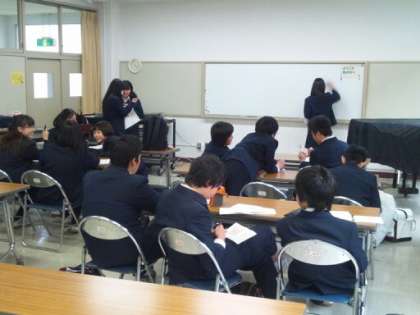 写真は、視聴覚委員会で、学年ごとに活動の反省を話し合っている様子です。(副校長)