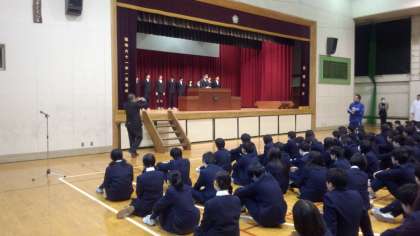 「3年生は、明日は都立高校一時入試の出願です。日曜日からは都内私立高校の一般入試が始まります。今、ものすごい緊張感やことばにできないようなプレッシャーを感じているのではないかと思います。私は、一年間、3年生の皆さんの努力の過程を見てきましたが、他の中学校の生徒に負けないほど、それ以上にがんばってきたと思っています。自分を信じて、最後の最後まであきらめずにがんばってください。