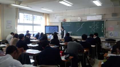 写真は、3年生の社会です。都立高校の入試対策で、地理の地形図のポイントを復習していました。もう少しの間、がんばれ、3年生。