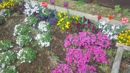 だんだんと日差しが暖かくなり、中庭のチューリップも満開です。