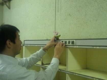 西川先生が靴箱に花を飾ってくれています。
