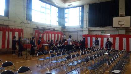右の写真は、吹奏楽部の練習の様子です。熱が入った演奏を聴かせてくれると思います。