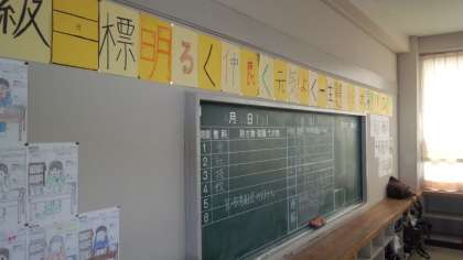 校舎内にはたくさんの掲示物があります。掲示物は、目標や目当てを示したり、取り組んでいる教育活動のイメージをふくらませたりするので、学校にとって大切なものです。