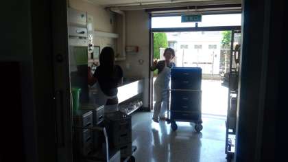 タンチ山の帰りに給食配膳室をのぞいたら、配膳員の方たちが「校長先生、今日もほとんど牛乳が残りませんでした。去年に比べると、牛乳をよく飲んでくれます」と、うれしそうに報告してくれました。暑い日が続くので、水分補給は大切ですね。