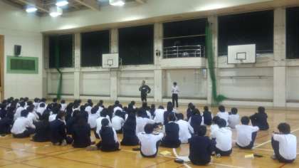 先生からは、修学旅行中のきまりを守り、卒業までしっかりやっていこう、というお話があり、生徒の皆さんは「はい」と大きな声で答えていました。