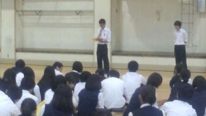 今日の午後、3年生は「修学旅行直前集会」を行いました。実行委員長からは「史上最高の修学旅行にしましょう」と呼びかけがあり、班長を始めとする各係の代表生徒が注意点などを確認してくれました。