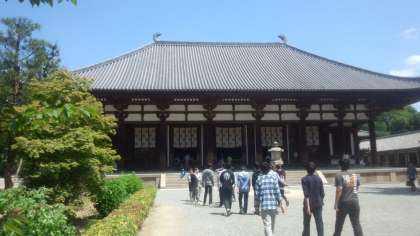 唐招提寺に到着しました。気温は高いですが、快晴です。