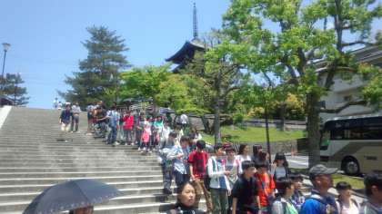 興福寺に到着しました。全員集合写真を撮り、昼食です。午後は奈良公園班行動です。みんな元気いっぱいです。