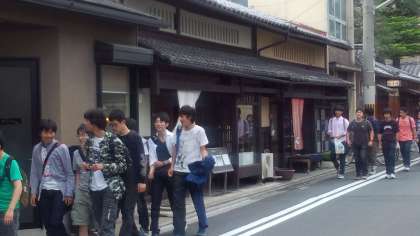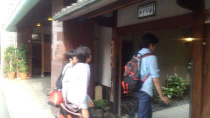 少し前に宿舎に宿舎しました。京都の町屋さんを通りながら、昨日の女将さんのお話を確認している生徒もいました。今は入浴時間です。