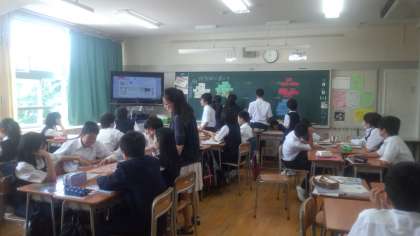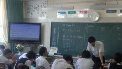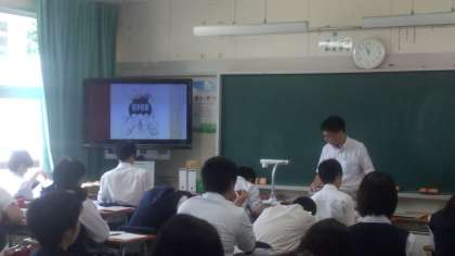 写真右は、1年生の家庭科です。既製服を購入するときの考え方など、身近な題材のために挙手や発言をする生徒が多く、楽しい授業でした。