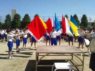 内容は行進、開会式の練習、ラジオ体操でした。