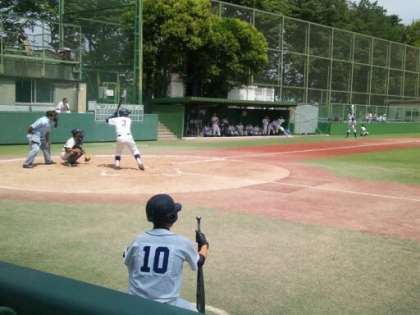 野球部が砧総合グランドで夏の大会の試合をしています。
