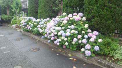 今日は雨模様で、しとしと降る雨に咲くあじさいがすごくいいです。
