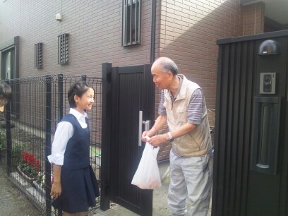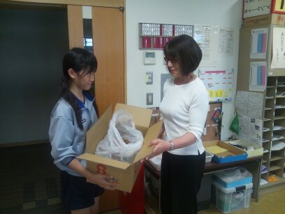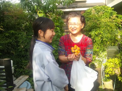 本日の放課後、本校の生徒会役員が学び舎の小学校や地域の方へ本校になったびわを届けにいきました。
