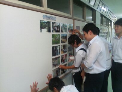 放課後、1階の掲示物を張り替えていたら、