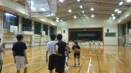 体育館では男子バスケットボール部とバドミントン部が活動しています。3年生はもちろん、1年生もがんばっていますね。