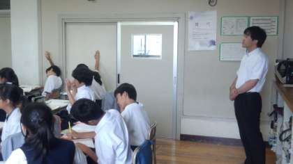 校長室で生徒の皆さんのがんばりを説明したあと、授業を見てもらいました。