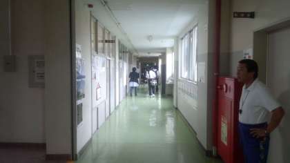 写真は朝の出席をとる前の3年生の廊下です。担任は教室で、副担任は廊下で生徒とあいさつを交わし、声をかけています。これが朝の毎日の風景です。