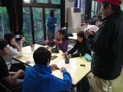 河口湖フィールドセンターに到着しました。これから樹海ガイドツアーと体験学習に分かれて行動します。