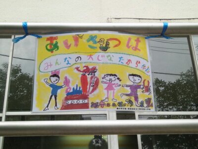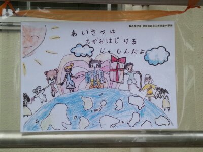 また、本校の正門のまわりには小学生が書いたあいさつ運動のポスターが掲示してあります。