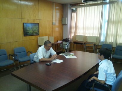 生徒は緊張しながらも、校長先生の質問にしっかりと答えていました。
