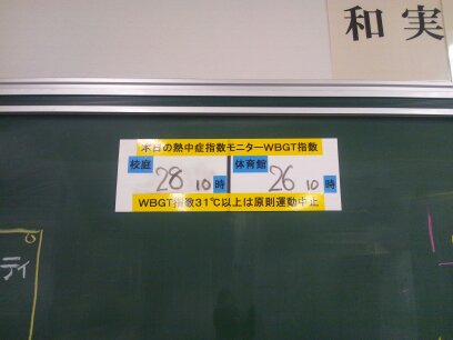 本校では、熱中症指数モニターで、熱中症指数を測定し、